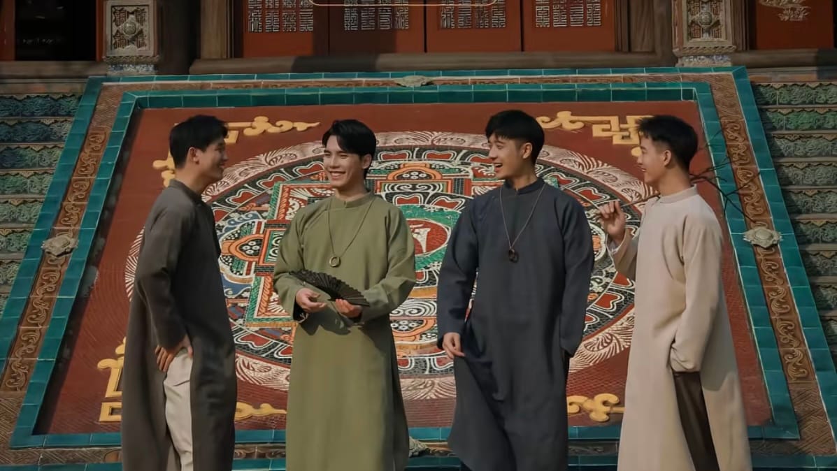 Dáng cổ điển đứng thẳng, chắp tay trước ngực hoặc cầm câu đối đỏ giúp áo dài nam không chỉ mang đậm dấu ấn truyền thống mà còn tôn lên vẻ thanh lịch của người mặc. Bạn cũng có thể đứng nghiêng nhẹ, ánh mắt nhìn xa hoặc tựa vào khung cửa gỗ để tạo tự nhiên và thoải mái nhất.