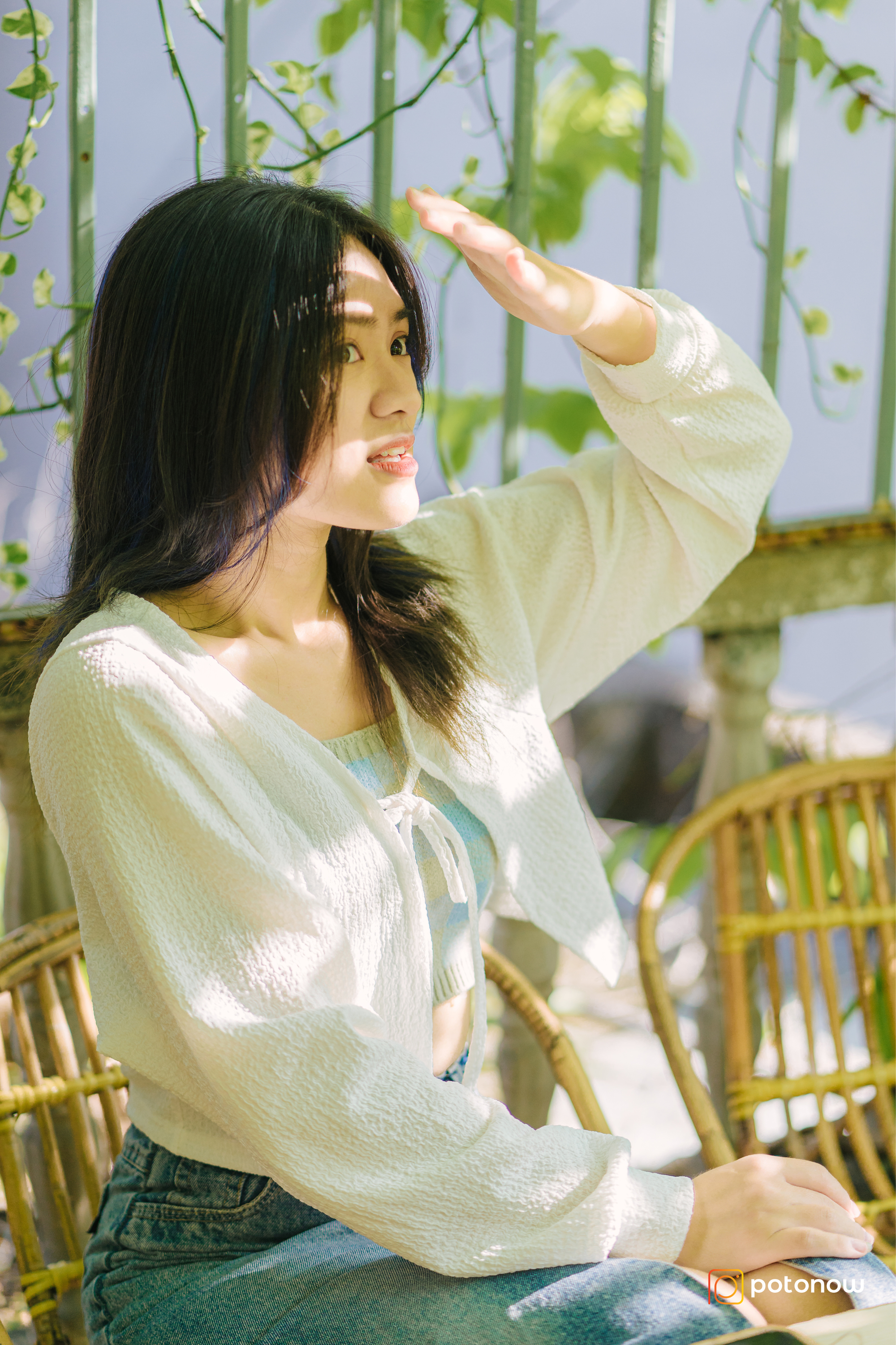 Một trong những tư thế vừa đơn giản vừa giúp bạn "ăn gian" ánh sáng chính là đưa tay lên che nắng. Hãy nhẹ nhàng giơ tay lên cao, che đi phần nắng chói chang, và tạo một biểu cảm thoải mái, tự nhiên. Khi ánh nắng chiếu qua các ngón tay, bạn sẽ có một bức ảnh lung linh, với sự hòa quyện hoàn hảo giữa ánh sáng và bóng tối. Đây cũng là cách dễ dàng tạo sự nổi bật cho khuôn mặt của bạn giữa cảnh nền tươi sáng.